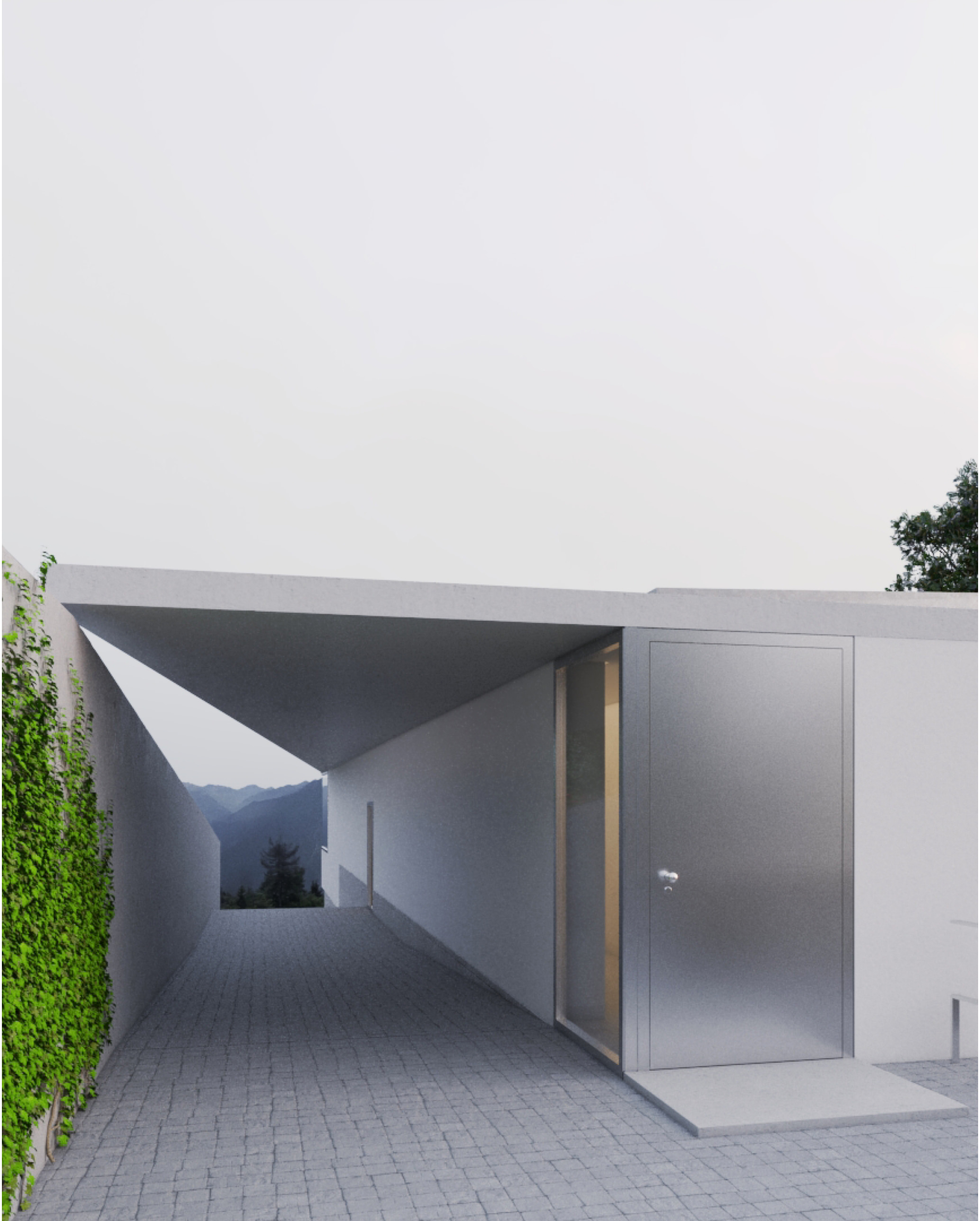 This 2500sqm site is very particular since the legal construction area was oriented into a North corner in a just 355sqm. By imposing regulatory distances on neighboor buildings, the house geometry start to be defined by default.