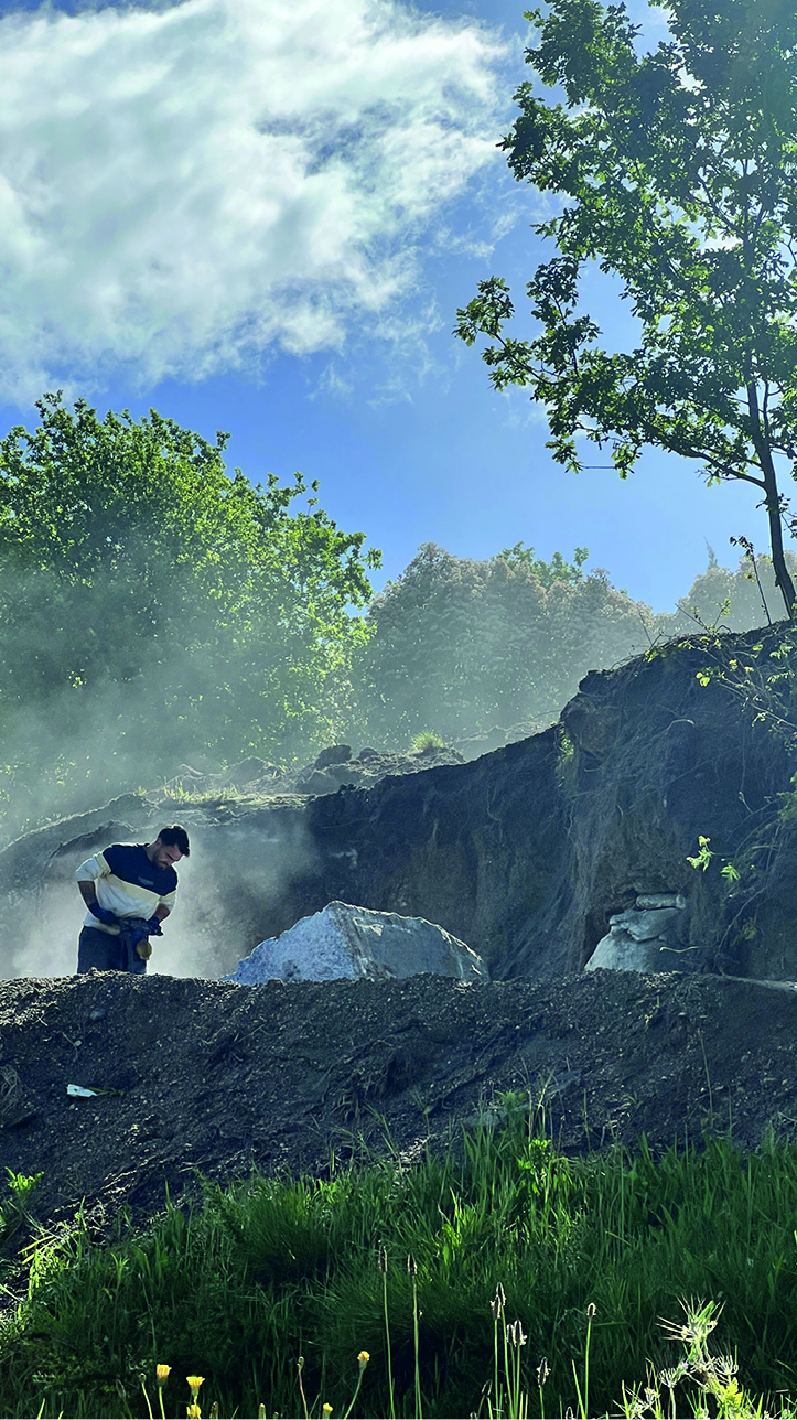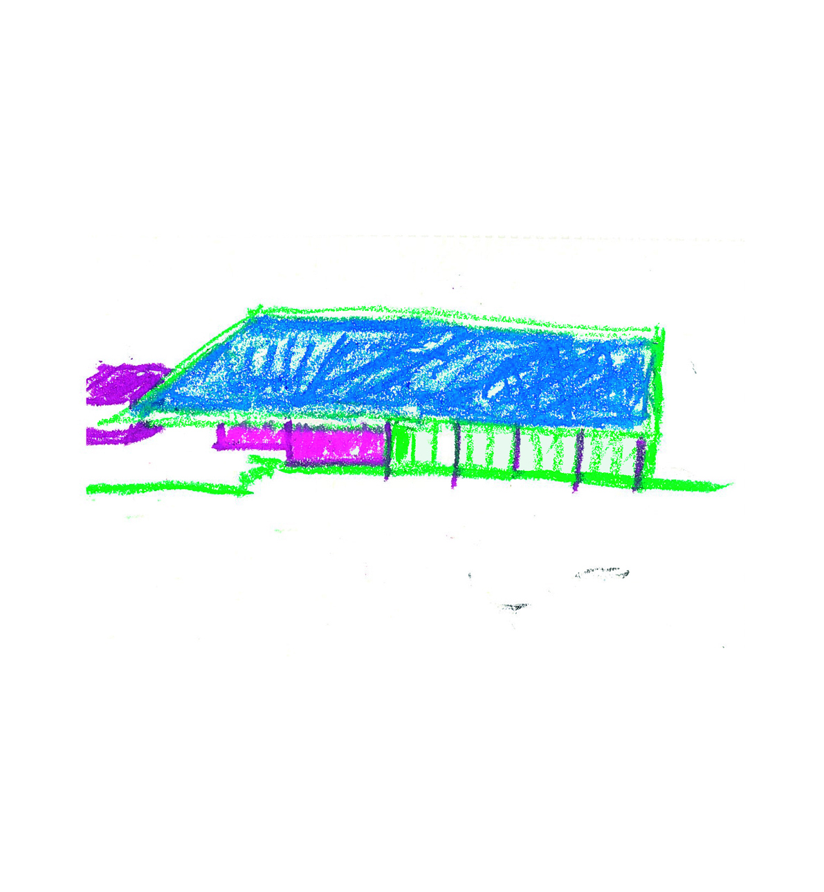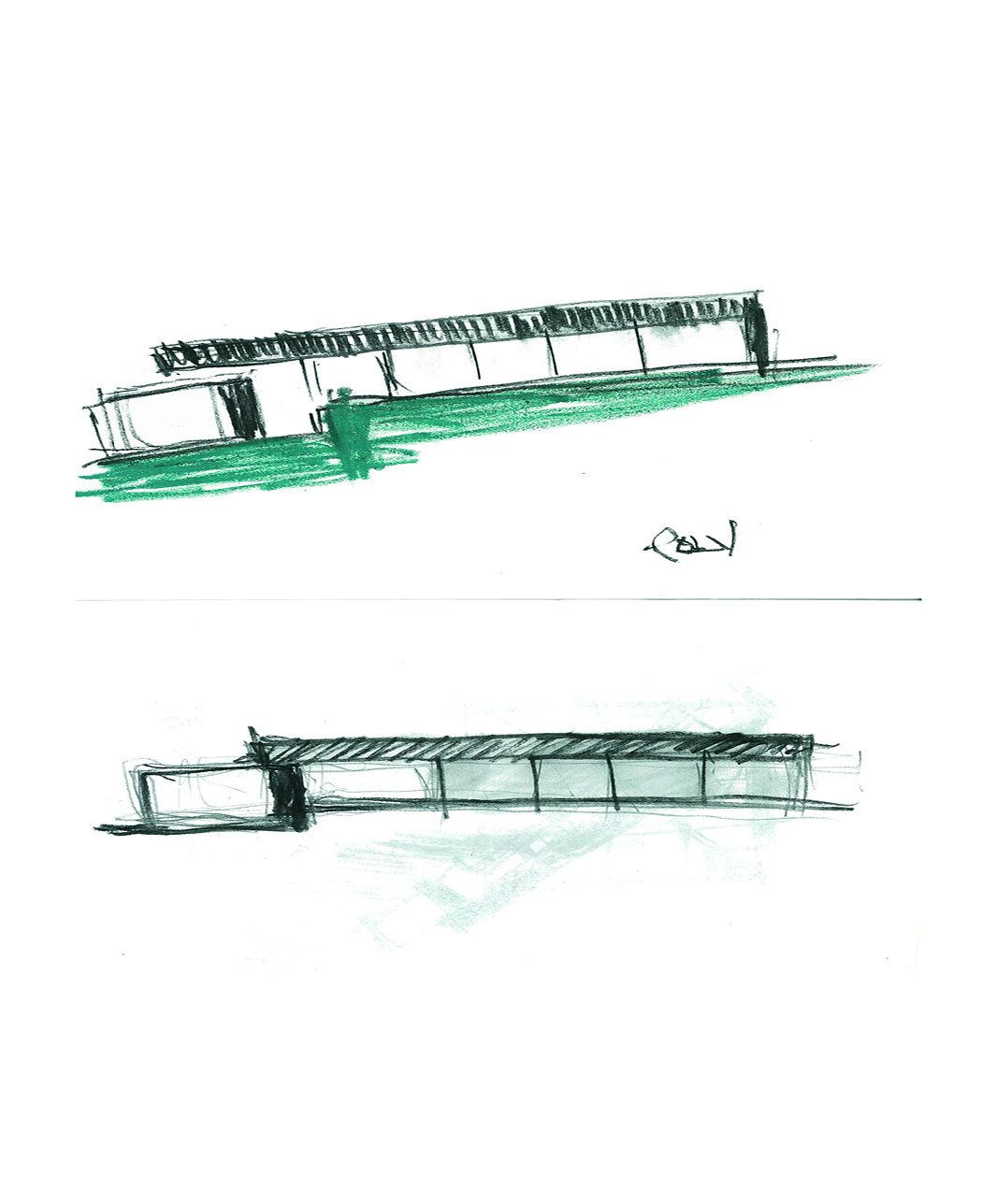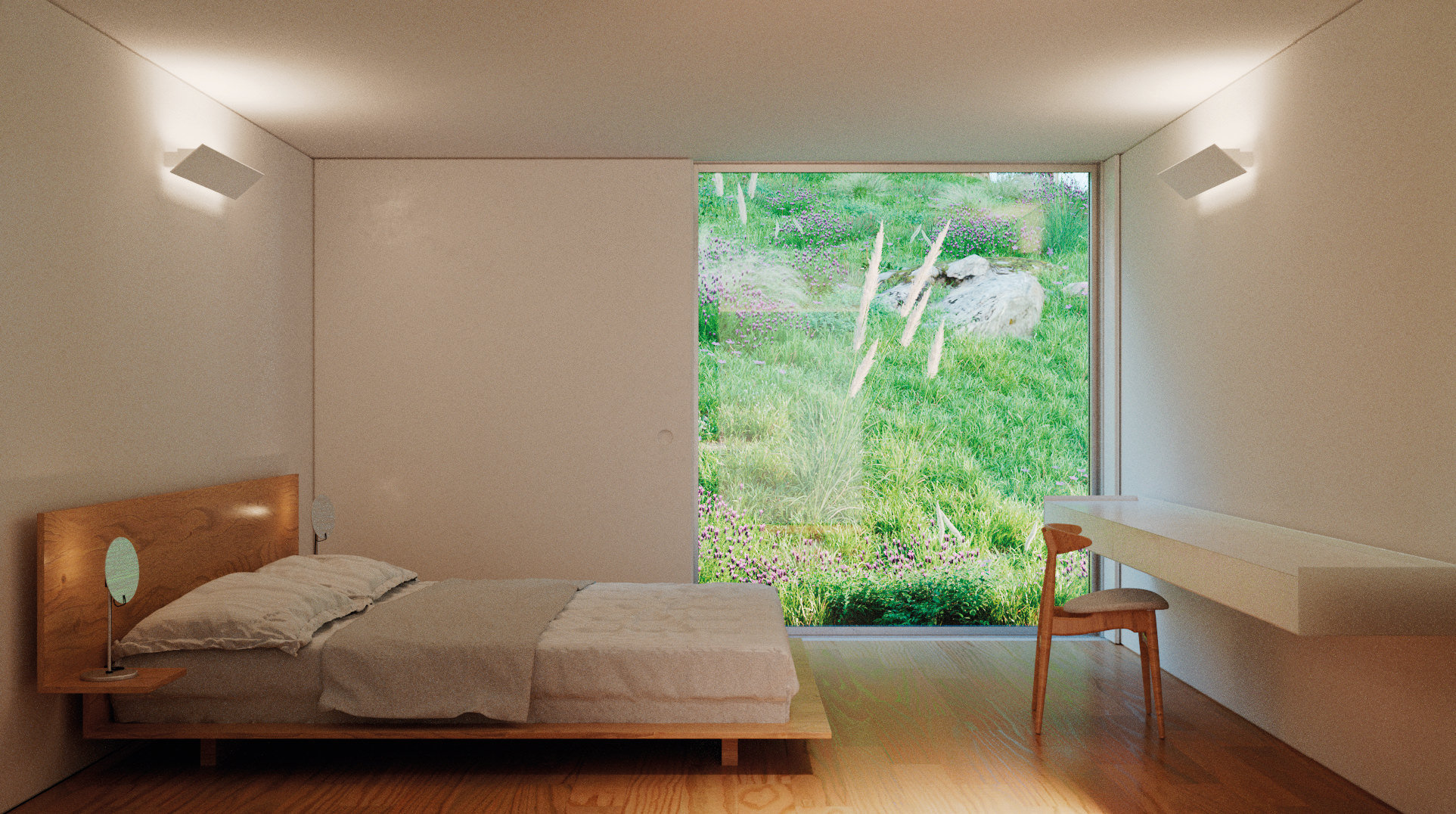 The construction site had a lot of municipal constraints besides an 8m differential from the high to the low level and being a highly rocky ground. The most structural design constraint was the definition of a different percentage of construction for each half of the land. The shape and position of the volume, for the minimum intended construction area, it was just an arithmetic game. The building base that touches the ground was the one that had to fit the percentages and, at some point, it was necessary to reduce the area. The module that divided the social area from the private area of the house seemed to be the right module to remove half of it, diagonally. Therefore, a 45º angle was defined which became the rule, whether for positioning the pool or defining the roof geometry that makes the connecting between the garage into the house.
