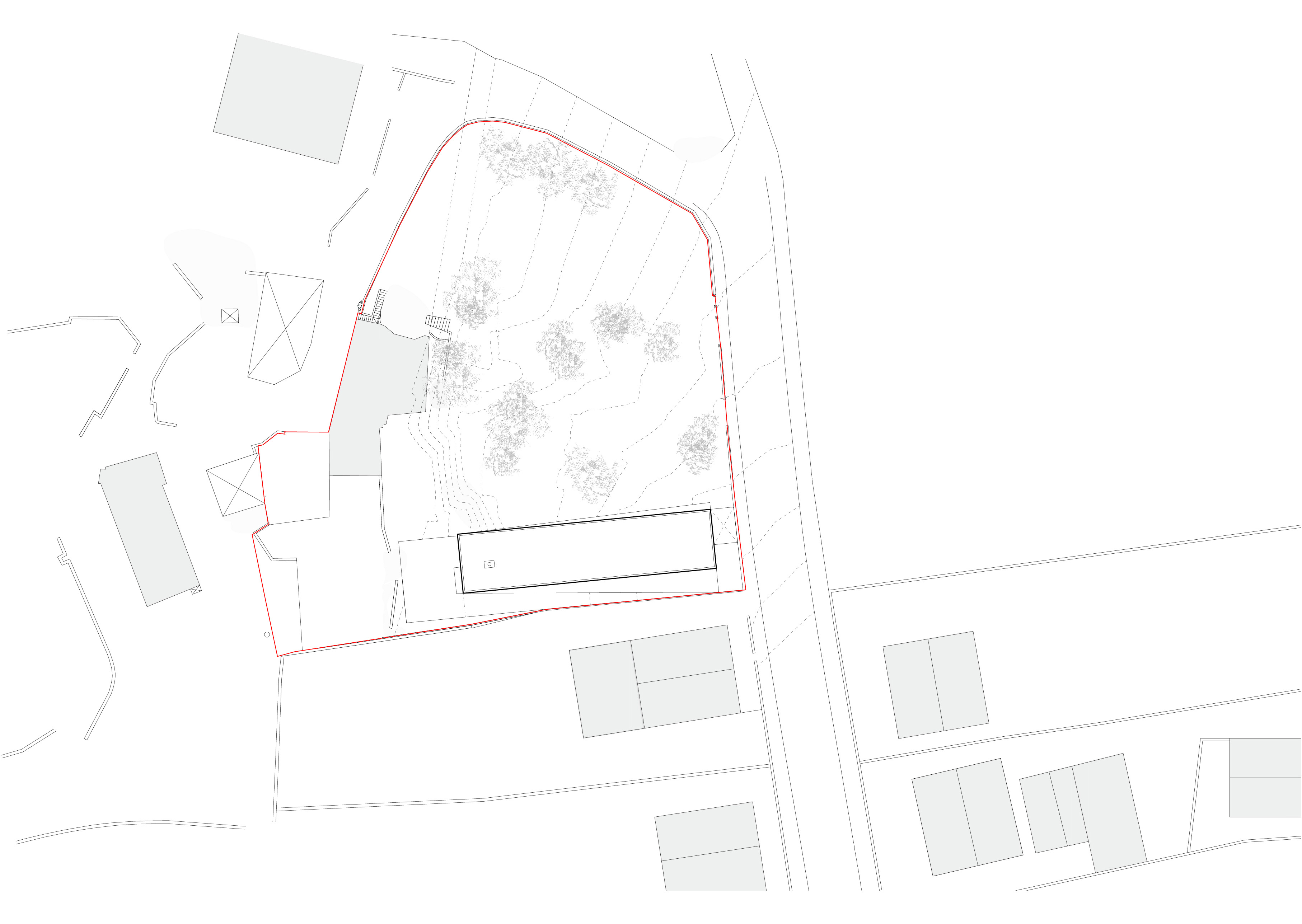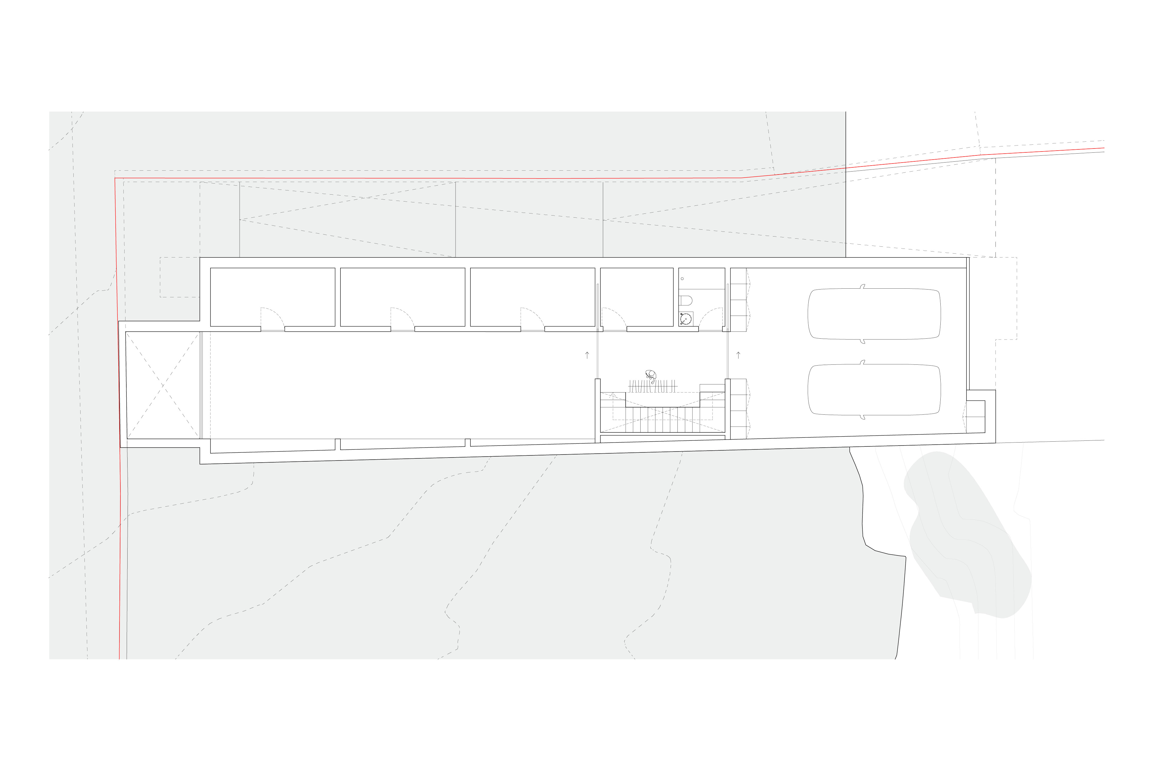 This 2500sqm site is very particular since the legal construction area was oriented into a North corner in a just 355sqm. By imposing regulatory distances on neighboor buildings, the house geometry start to be defined by default.