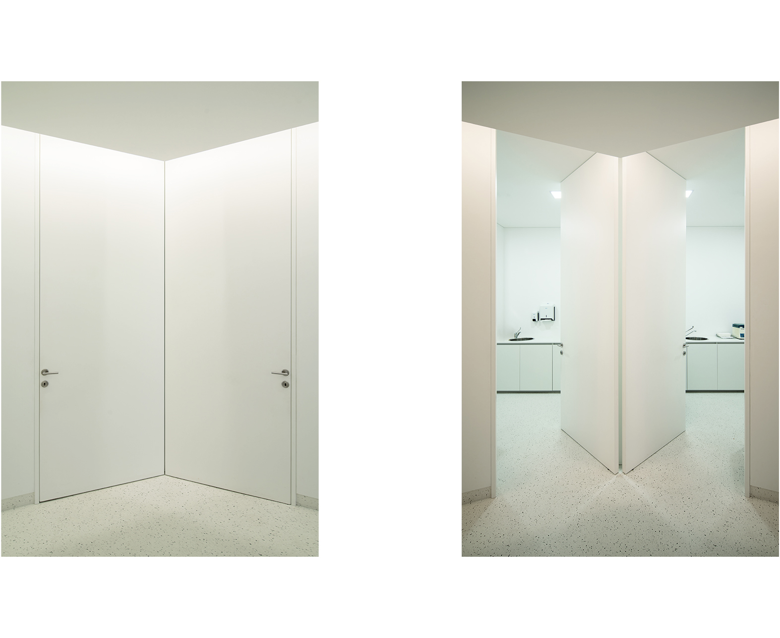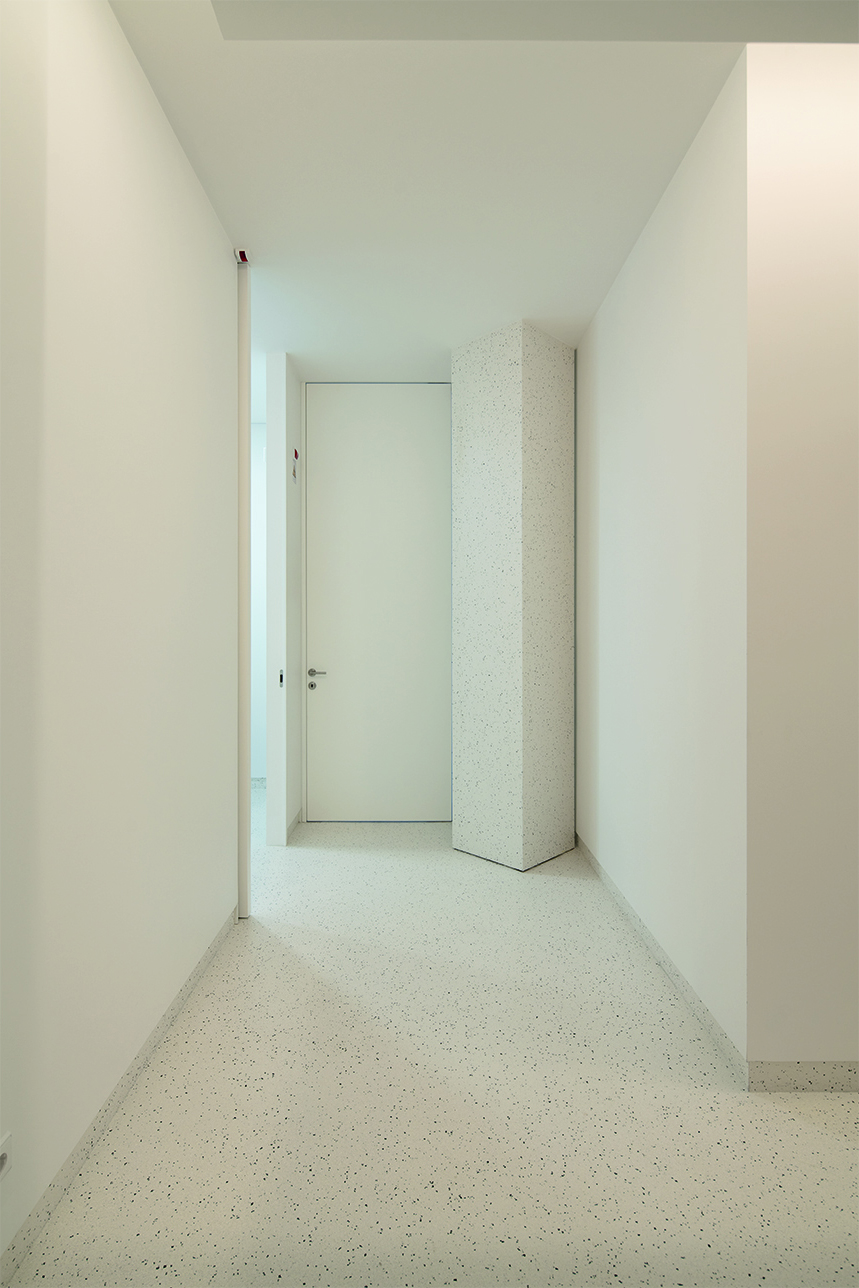 To enhance the different functions and experiences of the spaces, “high doors and low ceilings” were proposed at the access to the inner medical clinics. Essentially, the main concern was to plan a pleasant promenade leading to the private areas.