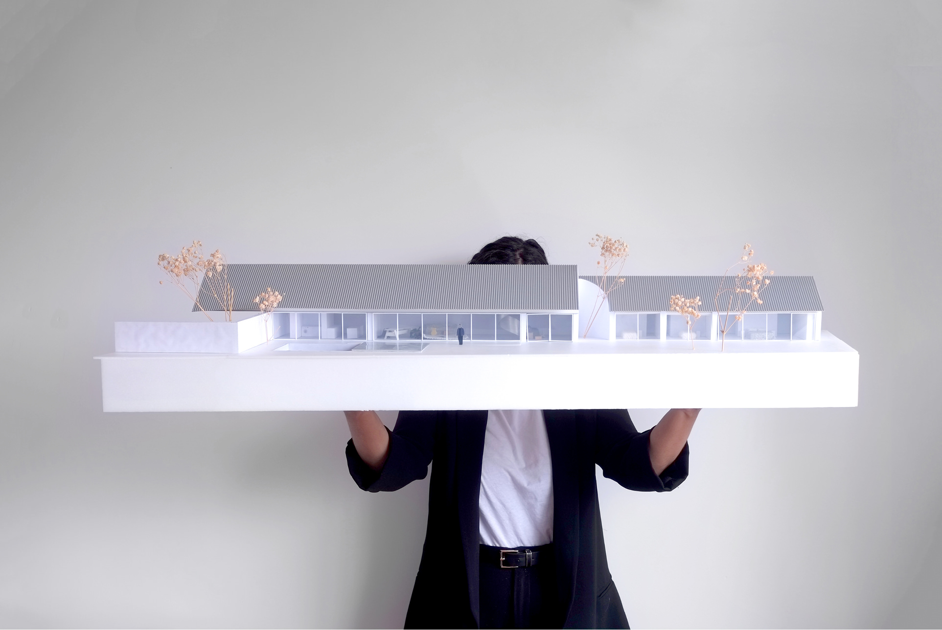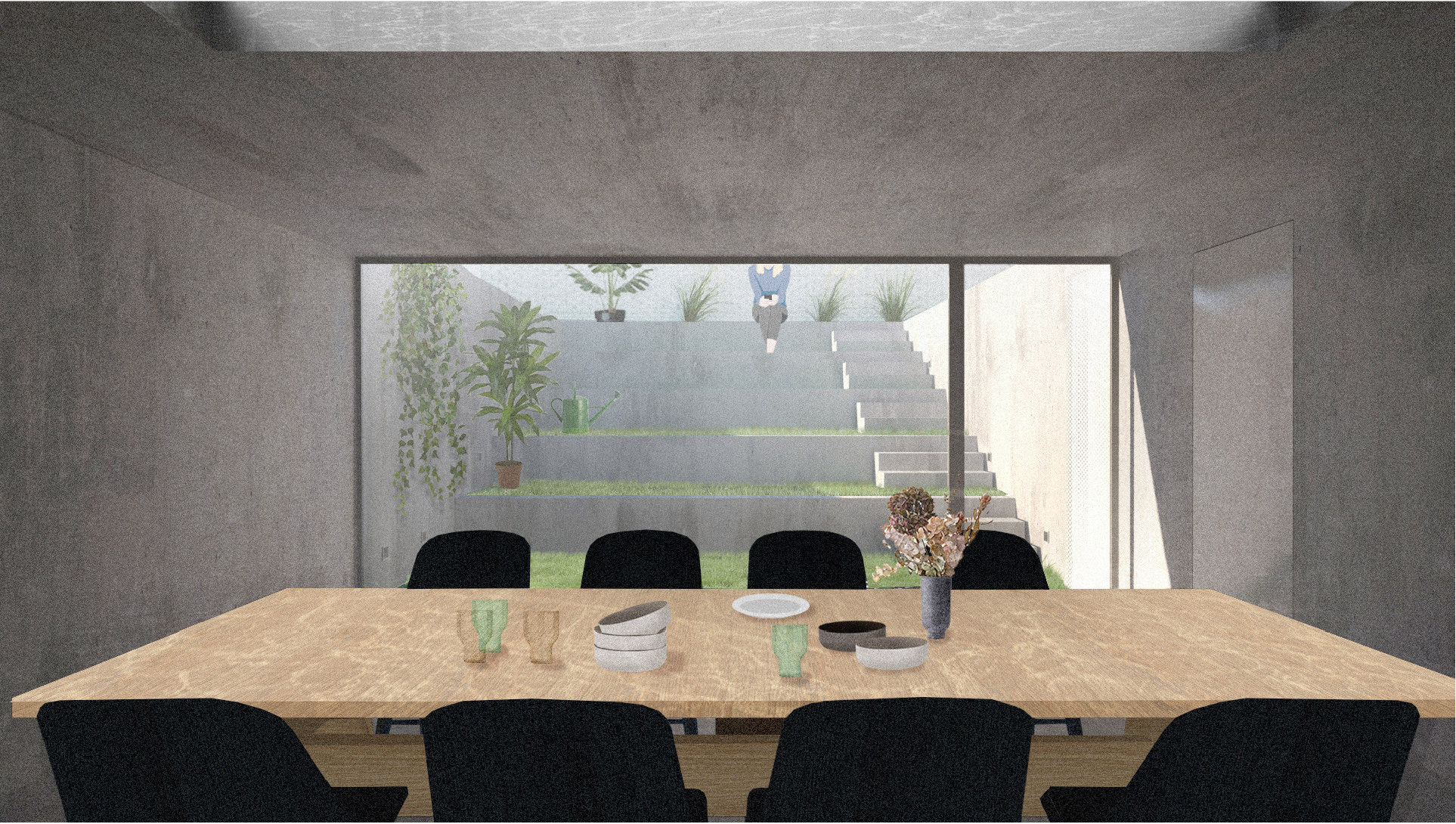 Through a modular structural grid the several uses are disposed over the glass panel that opens onto the garden to North. The different heights of the ceiling, the tree disposal and the body of water - and it’s relations - allows different atmospheres as one goes deeper into the house.