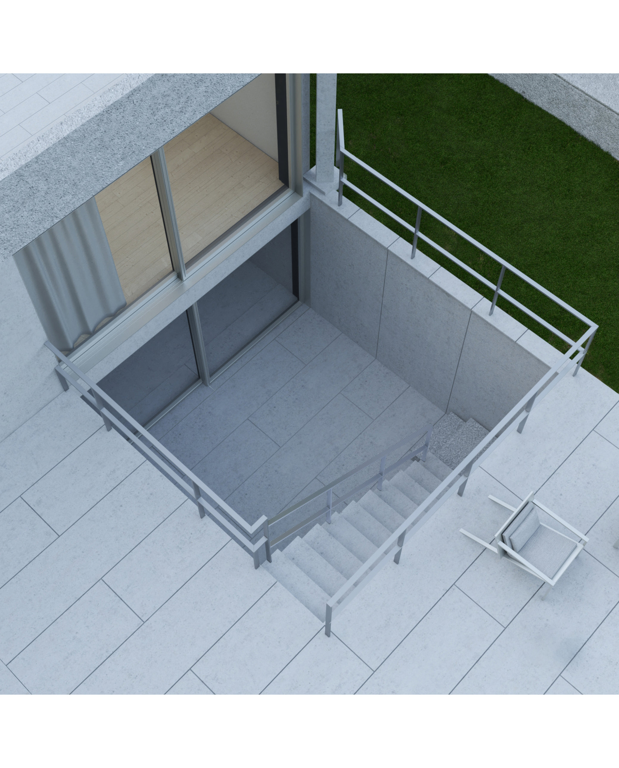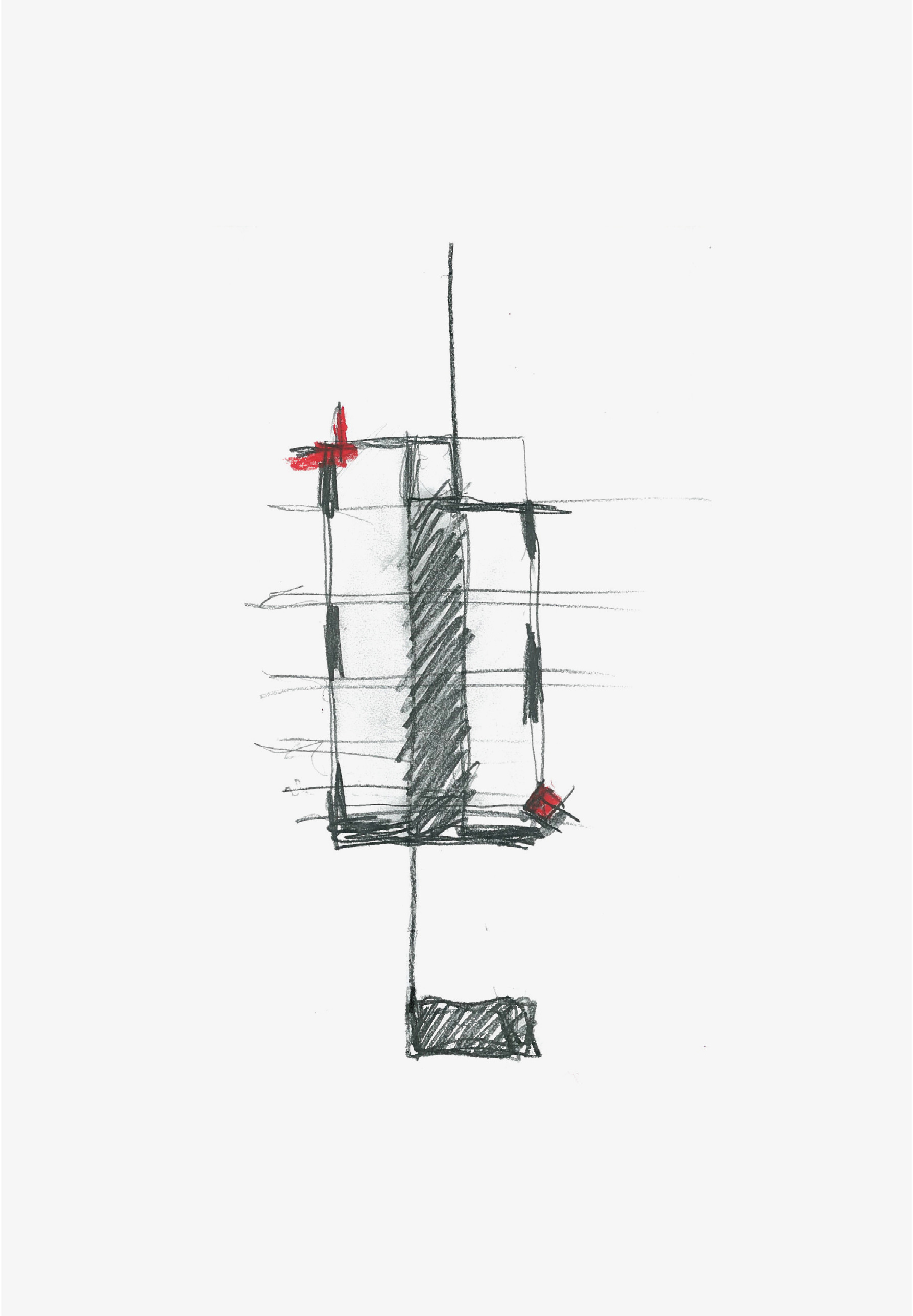 Complying with the legal distances around the perimeter of the plot, we propose a regular geometry coming out a wall that thouch the street and distinguishes the entrance of cars from people. Understanding neighboring noise buildings over the street, we proposed a very mimetic street front and, besides, a very concrete modular axes which defines spaces and facades. Above rigorous composition, we introduced two pillars to compose the corners of the geometry and abstract, in a way, the facades.